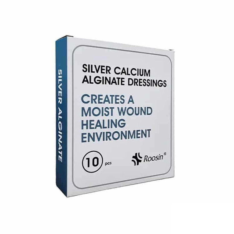 - پانسمان کلسیم آلژینات نقره دار روزین مشابه با کلسیم آلژینات ساده ضمن واکنش کلسیم با یون های سدیم زخم ایجاد ژلی پایدار نموده که با جذب اگزودا از محیط زخم محیط را مرطوب و آب گیری می کند.