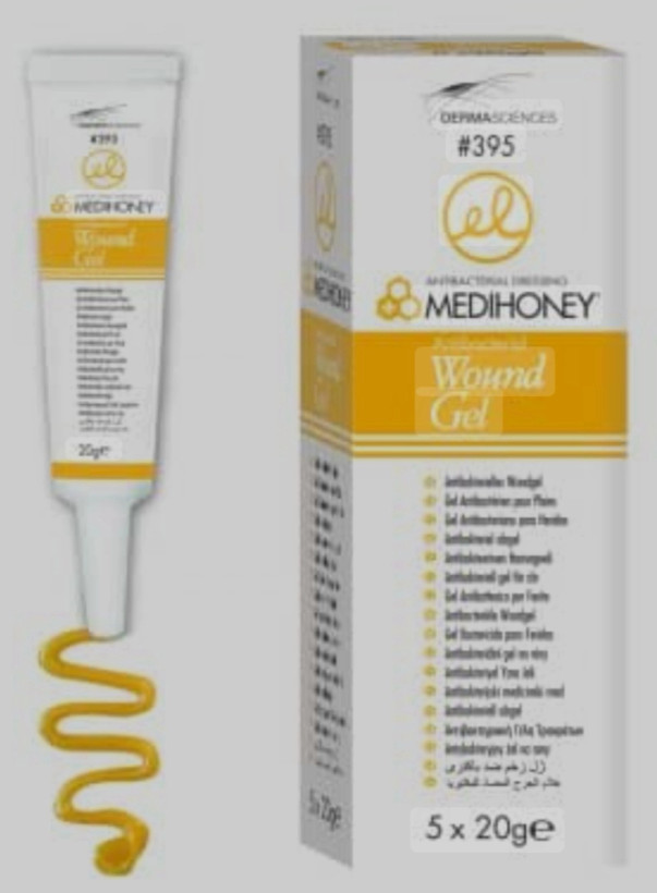 2- ژل زخم ضد باکتری Medihoney را میتوان مستقیماً روی زخم گذاشت. از تماس مستقیم زخم و نوک تیوپ پماد جلوگیری کنید.