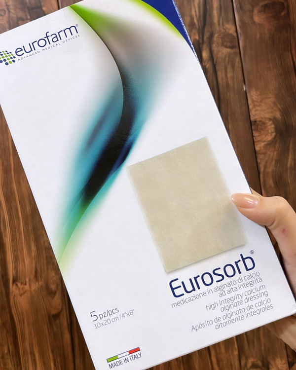 یوروزورب یک پانسمان آلژینات کلسیم با قدرت جذب بالا و کاملا سازگار با بافتهای بدن می باشد. تا چندین برابر وزن خود میتواند جاذب ترشحات باشد و با توجه به وضعیت بیمار و میزان ترشحات، تا 7 روز در محل زخم میتواند باقی بماند.