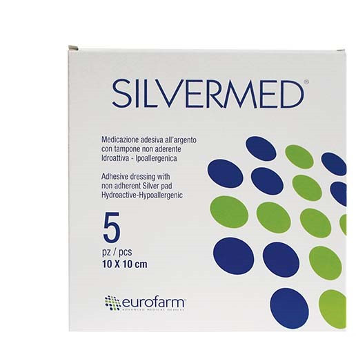 پانسمان نقره چسب دار یوروفارم (Silvermed) یک پانسمان استریل با یک پد جاذب و غیرچسبنده و دارای یون های نقره در مرکز آن می باشد. این پد دارای اثر آنتی میکروبیال است که روند ترمیم زخم را با کمک تکنولوژی نقره موجود در آن در روش نوین ترمیم زخم با فراهم آوردن محیط مرطوب تسریع می کند.